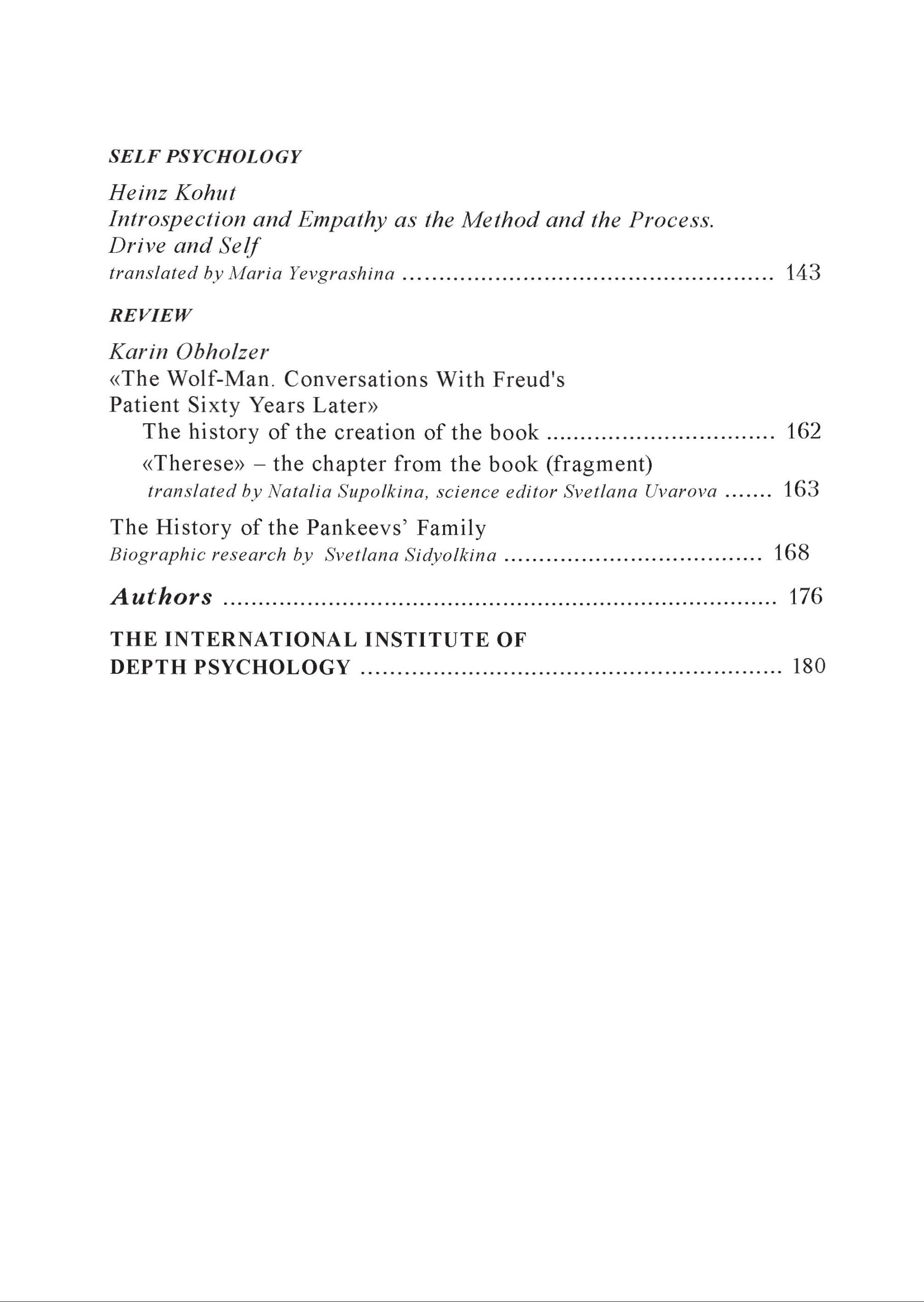 Ми сподіваємося, що матеріали цього номера будуть цікаві психоаналітикам різних шкіл і напрямків, психологам, а також читачам, які цікавляться питаннями індивідуального і соціального розвитку людини.